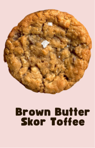 Our beloved brown butter vanilla oatmeal cookie, loaded with semi-sweet chocolate & Skor bits. Finished with Maldon's flaked sea salt. *contains Almonds*